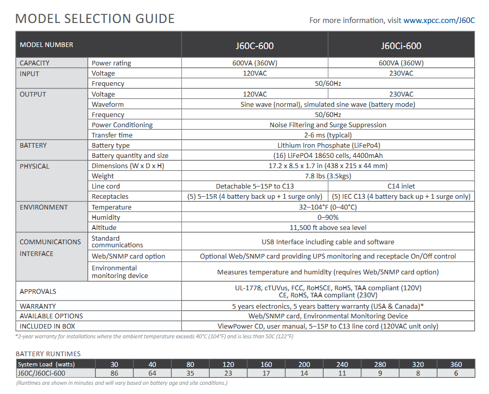 Xtreme Power Conversion J60-600 600VA / 360W 120V Lithium Ion UPS